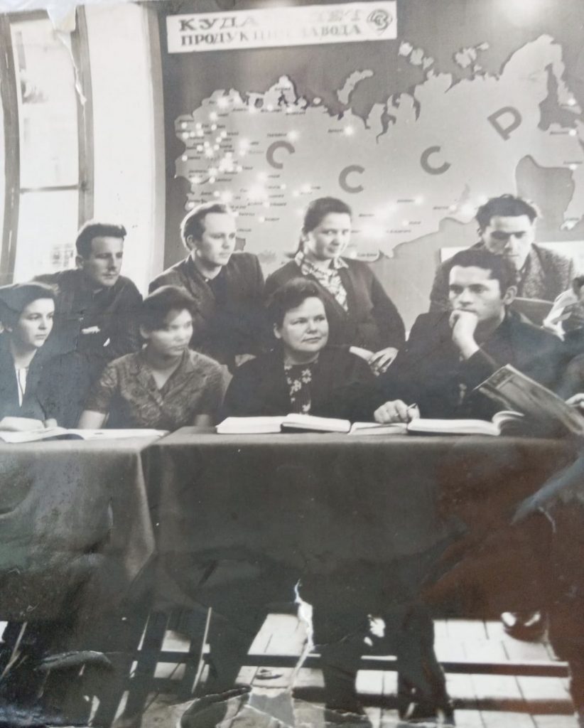 Тоже 1956 год. C коллегами во время обеденного перерыва на Старском-Чернятинском заводе.