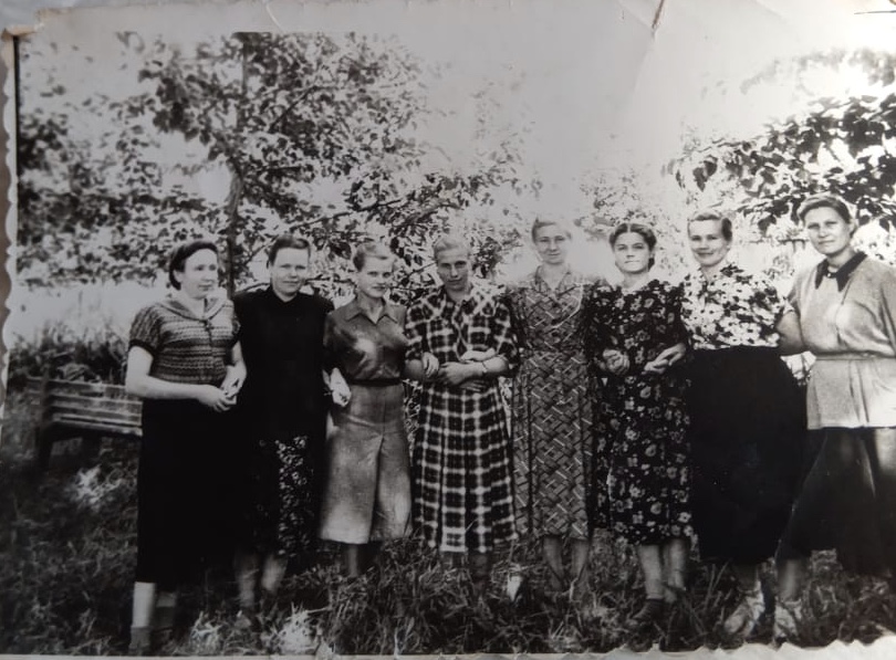 Бабушка с подругами во время обеденного перерыва на Старском-Чернятинском заводе.