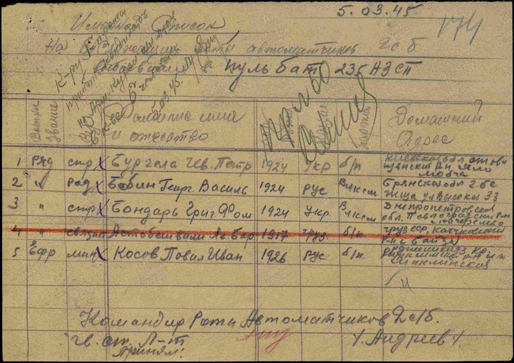 В 42 году попал на фронт на Курскую дугу. А тут военные документы.