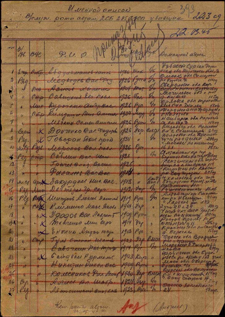 Родился он 23.04.1924. Вроде откуда то из Воронежа или округи. Но на момент начала войны жил в Бежице под Брянском (сейчас это район Брянска).