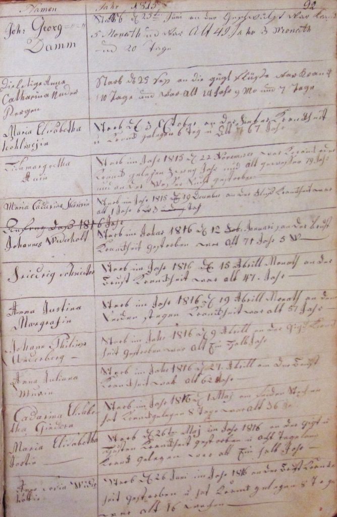 25.06.1815 умер Johann Georg Damm в возрасте 49 лет, 3 месяца и 20 дней (следовательно он родился 5.03.1766).