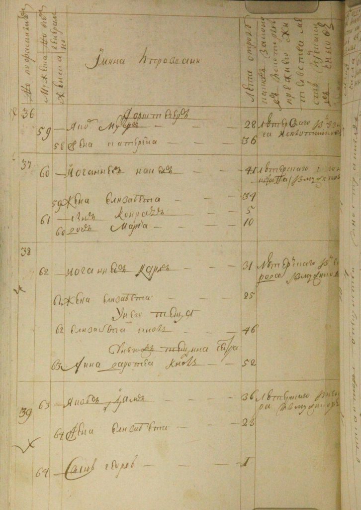 Жена Елизабета, 23 года (не вполне понятно. По ревизской сказке от 1798 ей было 51, то есть на момент приезда должно было быть 20).